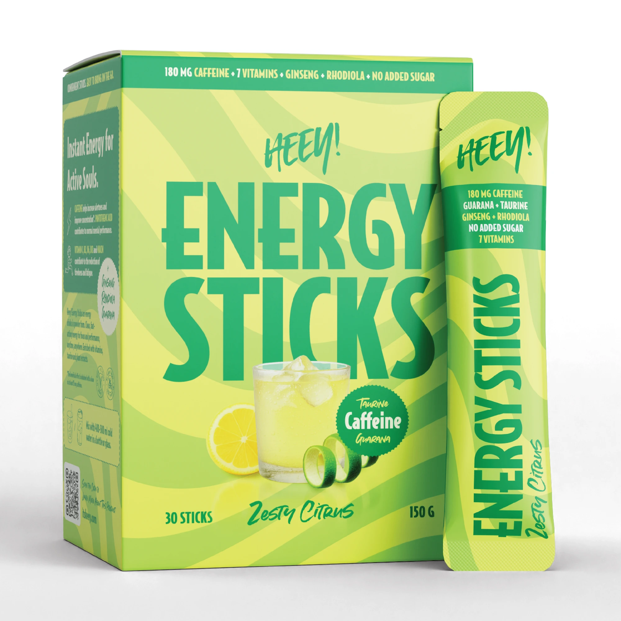 Heey! Energy Sticks Koffein + Guarana, Zesty Citrus, 30 stk.