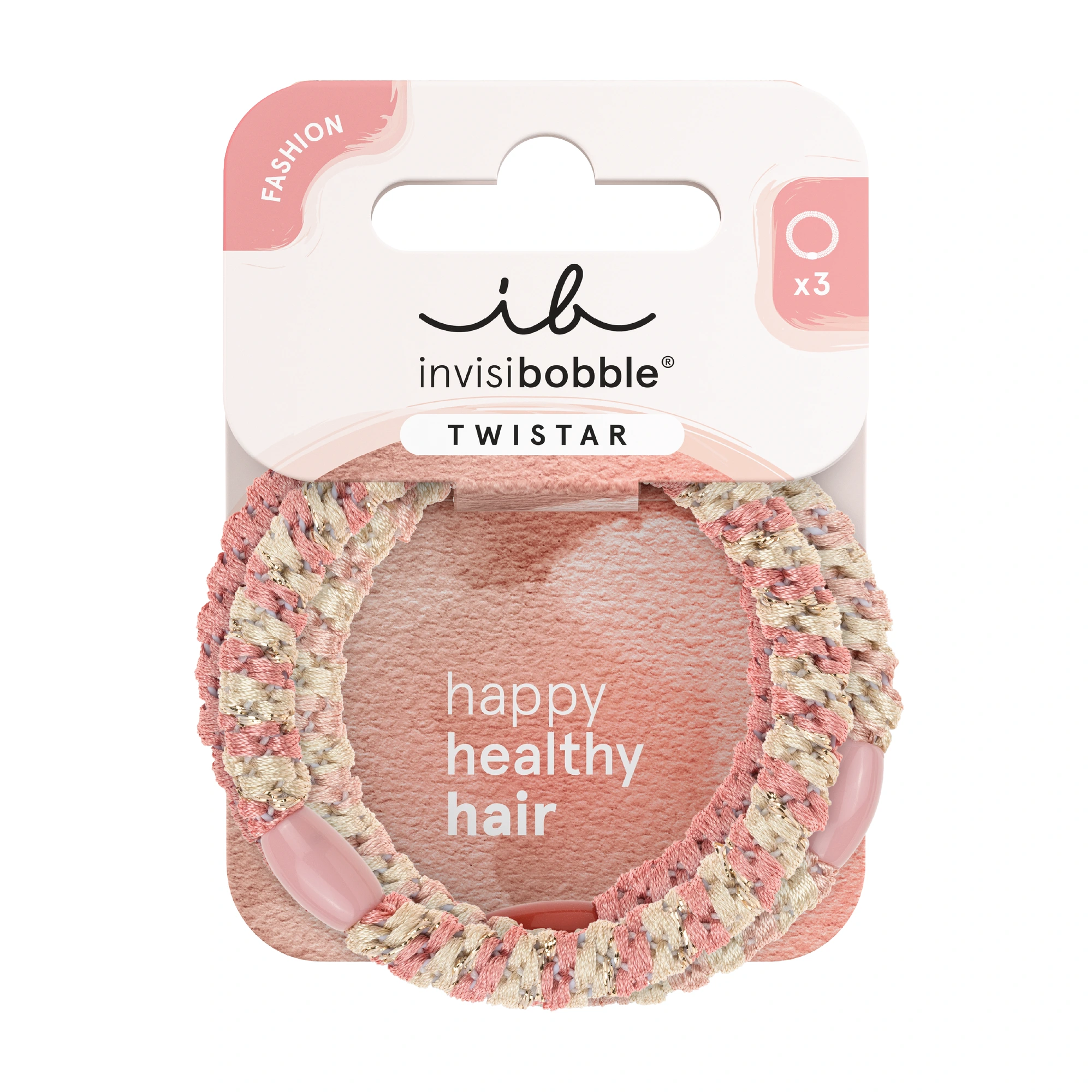 Invisibobble Twistar Hårstrikker, Rosa/beige, 3 stk.